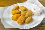 Juicy jalapeno poppers breaded and filled with cheese and fried to golden perfection.